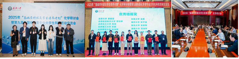 10月31日-11月2日,由教育部高等学校化学类专业教学指导委员会主办,武汉大学化学与分子科学学院承办的2025年“基础学科拔尖学生培养计划”化学研讨会暨第九届全国化学类专业大学生科技活动交流会在武汉举行。来自全国35所高校的150余名师生参加科技活动与研讨,我校化学学院2名教师和5位学生参会。