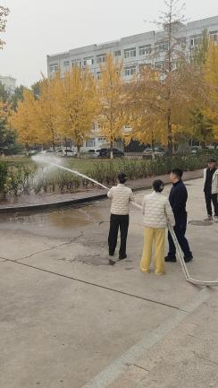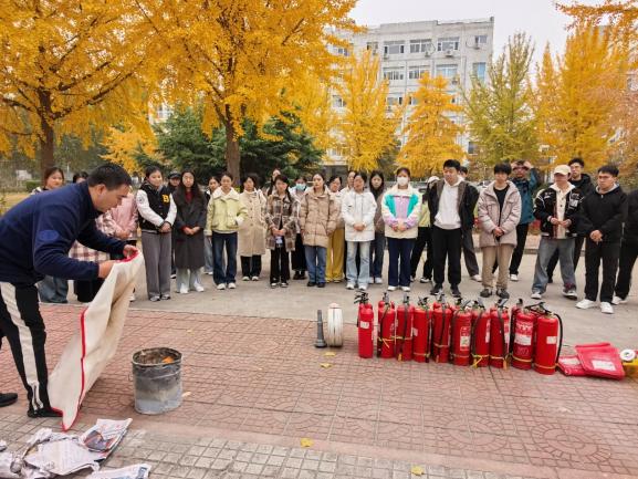 首先,保卫处消防科的老师为学生们系统讲解了消防安全基础知识,并重点介绍了消防面具的正确佩戴、灭火毯和不同灭火器的适用范围及操作要点,详细讲解了消火栓的使用方法和注意事项。在随后的“真火真水”实战环节,学生们在老师的全程指导下,依次使用灭火器进行灭火的实操练习,并两人一组,协作完成了消防栓水带的快速连接与出水演练。指导老师密切关注每一步操作,及时纠正灭火距离、喷射角度及水带衔接中的问题,确保每位学生都能准确、规范地掌握核心技能。