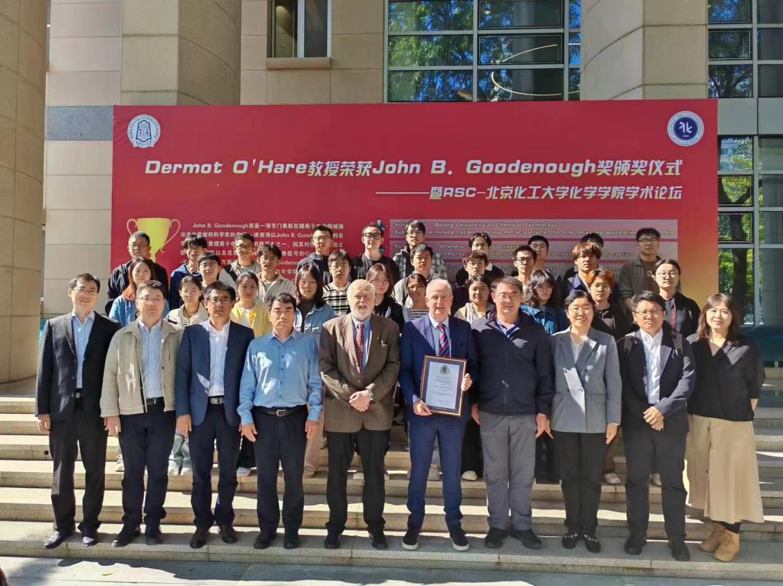 On the morning of October 11th, the award ceremony for Professor Dermot O'Hare receiving the John B. Goodenough Award, along with the RSC - BUCT School of Chemistry Academic Forum, was held in the second-floor lecture hall of the conference center at the East Campus. The event was chaired by Professor Han Jingbin, the vice dean of the School of Chemistry. Guests included David G. Evans, chairman of the Royal Society of Chemistry Beijing Local Section and a professor at BUCT, Professor Dermot O'Hare from the University of Oxford, Professor Wang Qiang from Beijing Forestry University, Professor Zhang Xin from BUCT, Professor Zhao Yufei from BUCT, Professor Li Shuangde from the Institute of Process Engineering, Chinese Academy of Sciences, and Associate Professor Zhu Xuan from Shanghai Jiao Tong University.The main agenda of the event included the academic forum and the John B. Goodenough Award ceremony.