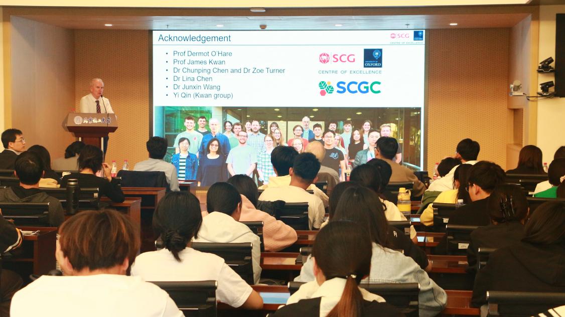 Professor David G. Evans, chairman of the Royal Society of Chemistry Beijing Local Section, presented the honor certificate to Professor Dermot O'Hare on behalf of the Royal Society of Chemistry and extended his congratulations. After the award ceremony, Professor Dermot O'Hare delivered an exciting report titled "Latest Developments for LDHs," sharing the latest research progress of his team on LDHs with the attendees. Following the report, students actively participated in discussions and interacted with Professor Dermot O'Hare.